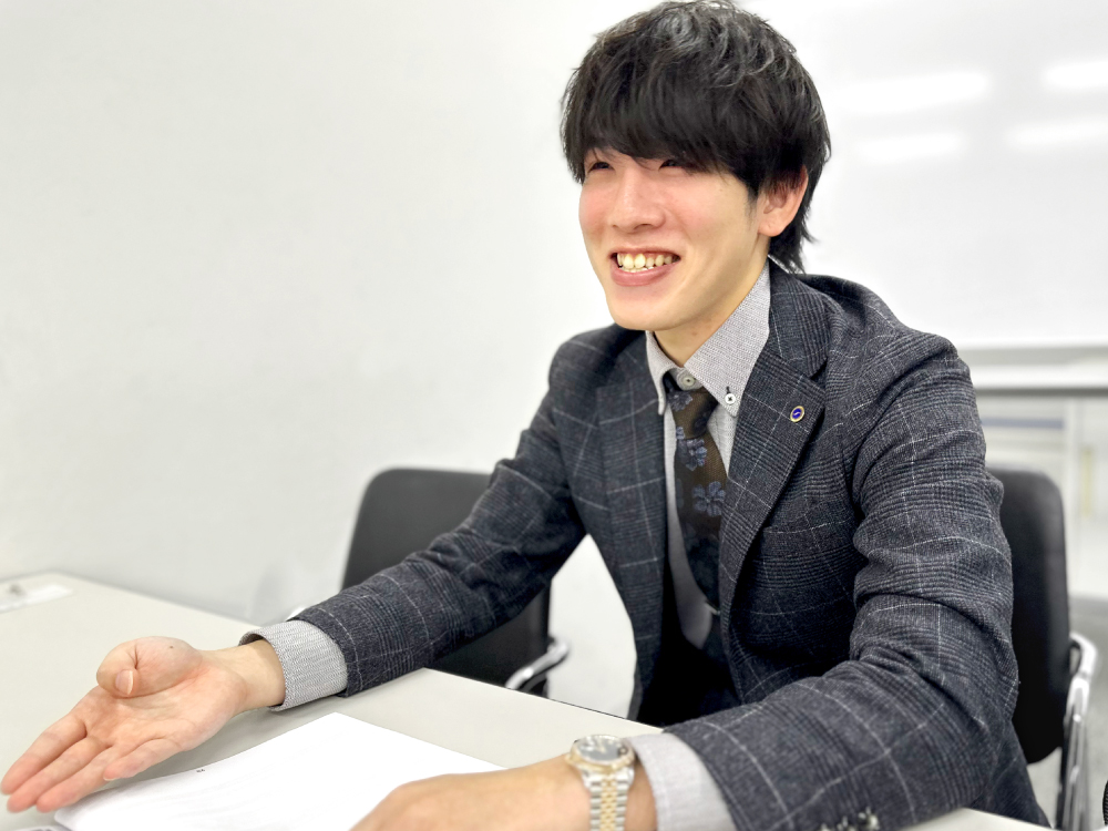 初期配属は教務。営業にも挑戦したいと考え、営業職にジョブローテーション。入社5年目・営業稼働2期目で天神支店の過去最高売り上げ記録を更新、全社営業売上成績2位の会社のホープ。