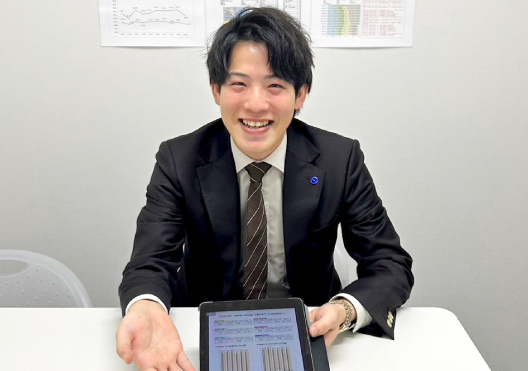 初期配属は教務。営業にも挑戦したいと考え、営業職にジョブローテーション。入社5年目・営業稼働2期目で天神支店の過去最高売り上げ記録を更新、全社営業売上成績2位の会社のホープ。